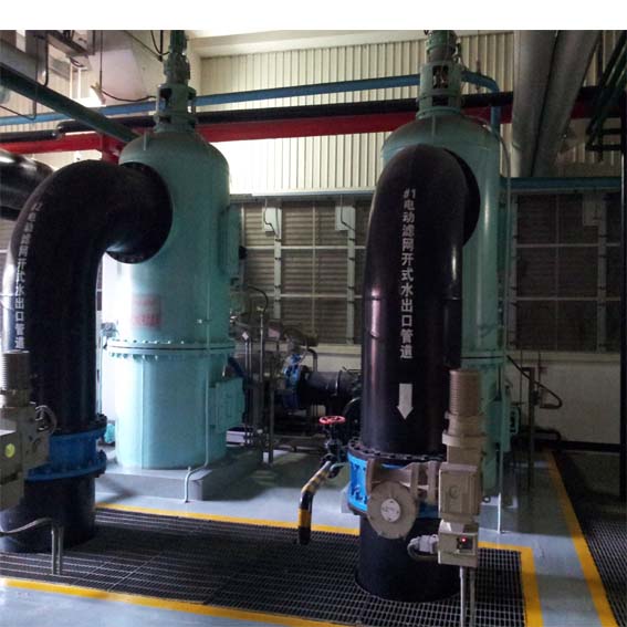 PLC全自動反沖式二次濾網在正常過濾狀態時,電動減速機不啟動,排污閥關閉。循環水從進口進入二次濾網筒體內產生差壓,隨著過濾的繼續進行,雜質在濾網上附著,壓力差會升高,當壓力差達到設計值時,差壓變送器將信號傳送PLC,PLC指令減速機啟動,同時啟動電動排污閥,進入自動清洗狀態,當排污閥打開時排污槽處負壓狀態。當濾網旋轉時網面上的附物將被反沖進入排污槽被排出。有時塑料薄膜緊貼網面很難被反沖下來時,因為排污槽的后置設有強排污裝置,將薄膜強行除掉。完成自動旋轉反沖,自動清洗、自動排污過程后,差壓恢復正常狀態下,PLC指令電動減速機停止運行,電動排污閥關閉,過濾系統正常運行。為了保證二次濾網的雙相功能安全運行,同時可設定0—999小時的時間性排污。PLC可按設定時間指令全自動二次濾網自動完成清洗過程,清洗時間可設定為5—15分鐘。當時間達到設定時間時,PLC指令關閉排污閥,停止減速機的運行。全自動反沖式二次濾網可實現全自動單獨運行,還可預留DCS接口。該產品使用周期長,維修量小,可節省大量的人力和物力。