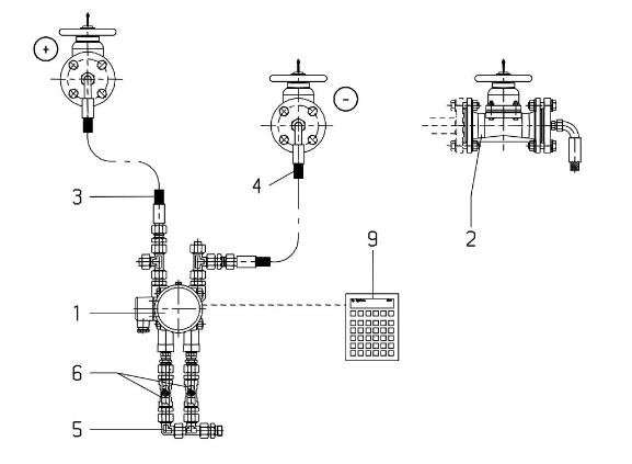 沖洗閥6測(cè)量時(shí)將壓差測(cè)量表與沖洗水分離。打開(kāi)相應(yīng)沖洗閥,可用外部水源將壓差測(cè)量表以及柔性管內(nèi)的雜質(zhì)沖洗干凈。