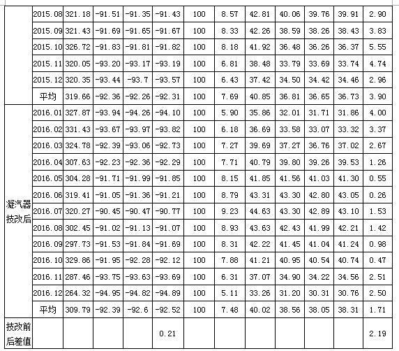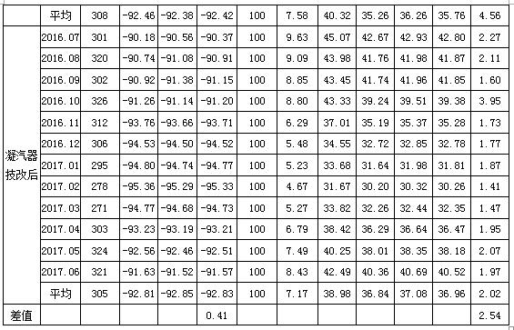 從凝汽器端差統(tǒng)計(jì)數(shù)據(jù)可知,安裝膠球清洗裝置后,#1機(jī)組和#2機(jī)組凝汽器端差在夏季工況和冬季工況下都得到了很好的保持,較設(shè)計(jì)值降低2~4℃,較技改前降低2~3℃,且端差保持較好,沒有隨著膠球清洗裝置機(jī)組運(yùn)行時(shí)間而出現(xiàn)較大的變化。