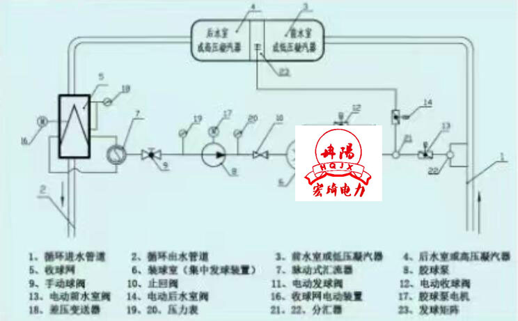 膠球清洗裝置凝汽器系統(tǒng)(多點集中海綿剝皮膠球清洗)技術(shù)說明